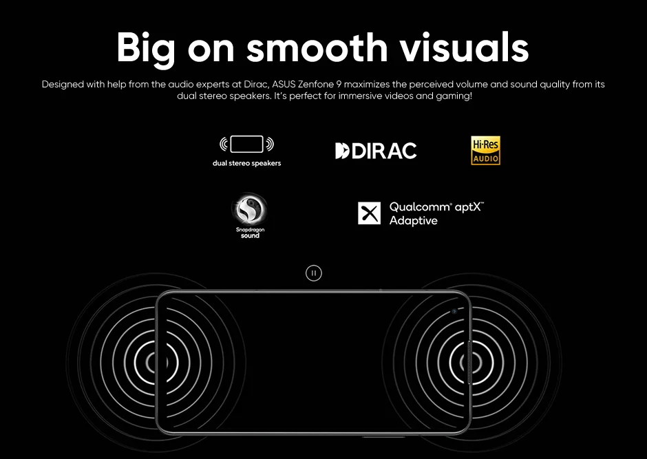 Diseñado con la ayuda de los expertos en audio de Dirac, ASUS Zenfone 9 maximiza el volumen y la calidad del sonido de sus altavoces estéreo duales. ¡Es perfecto para vídeos y juegos inmersivos!