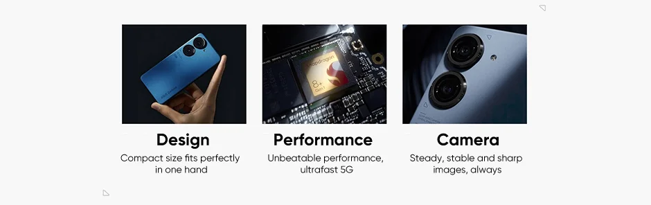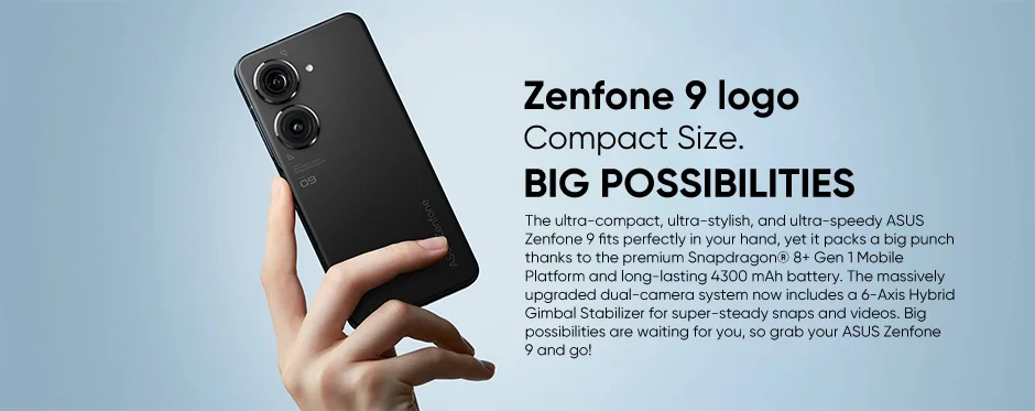 Camiseta TEl ASUS Zenfone 9 ultracompacto, ultraelegante y ultrarrápido cabe perfectamente en tu mano,