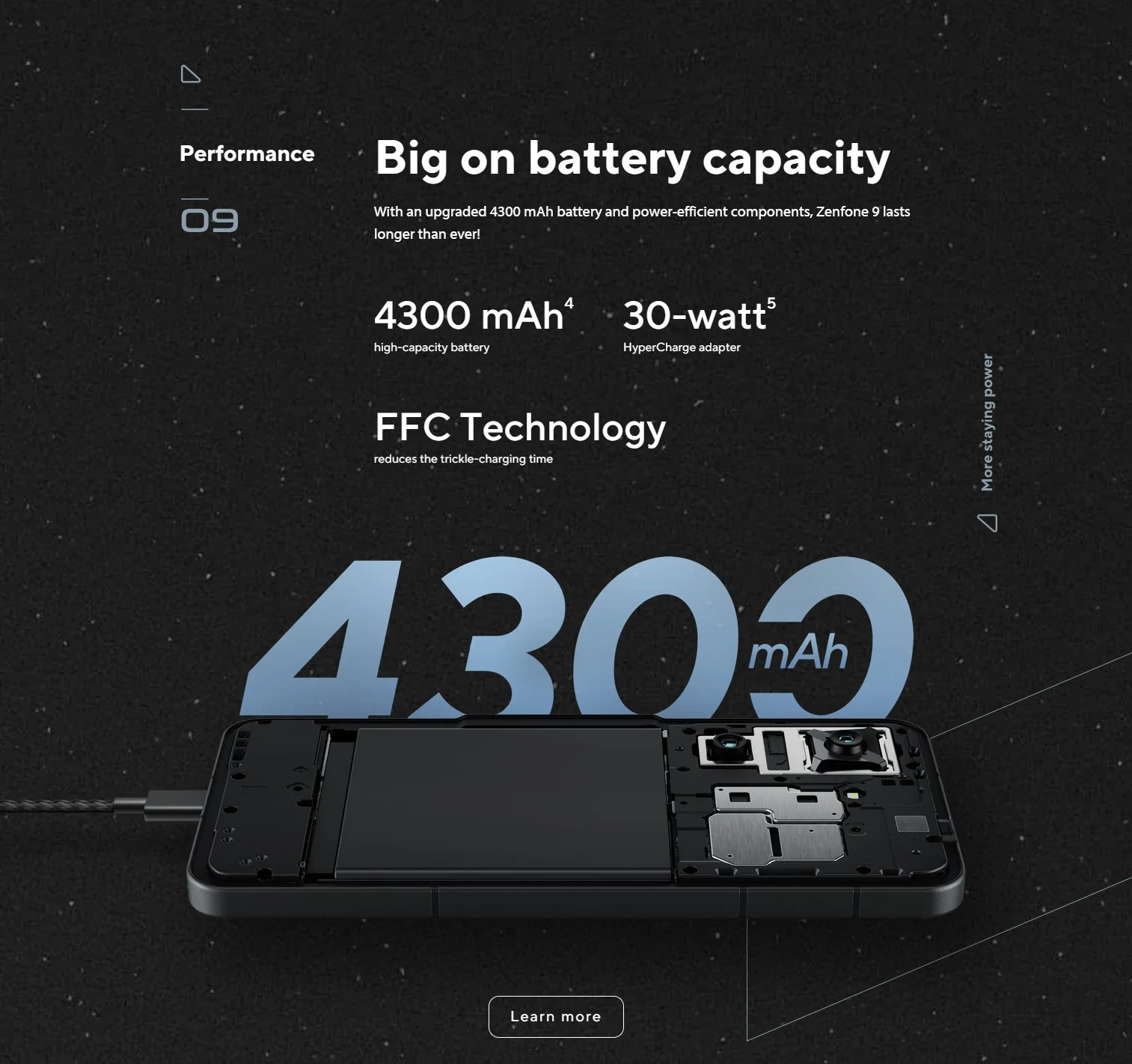 Con una batería mejorada de 4300 mAh y componentes de bajo consumo, ¡Zenfone 9 dura más que nunca!