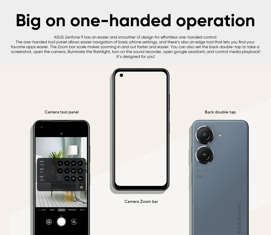 ASUS Zenfone 9 tiene un diseño de interfaz de usuario más fácil y suave para un control con una sola mano sin esfuerzo.