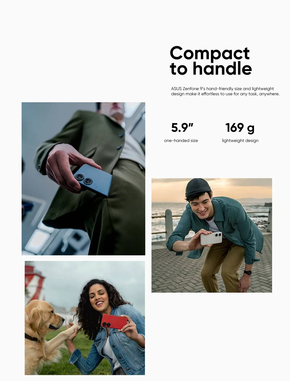 El tamaño y el diseño ligero de ASUS Zenfone 9 hacen que sea fácil de usar para cualquier tarea, en cualquier lugar.