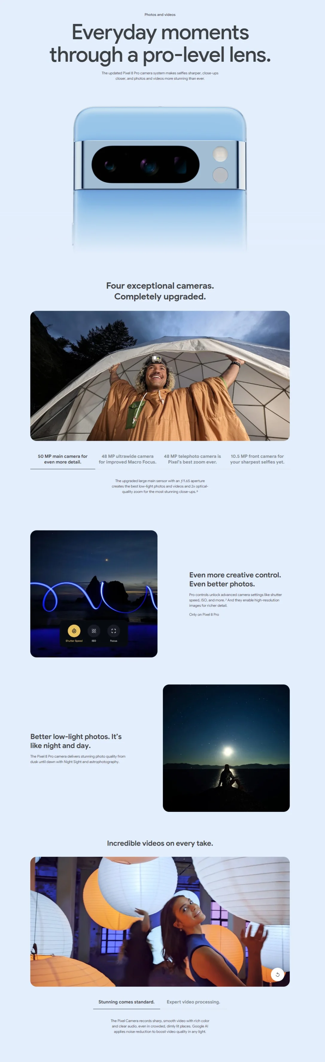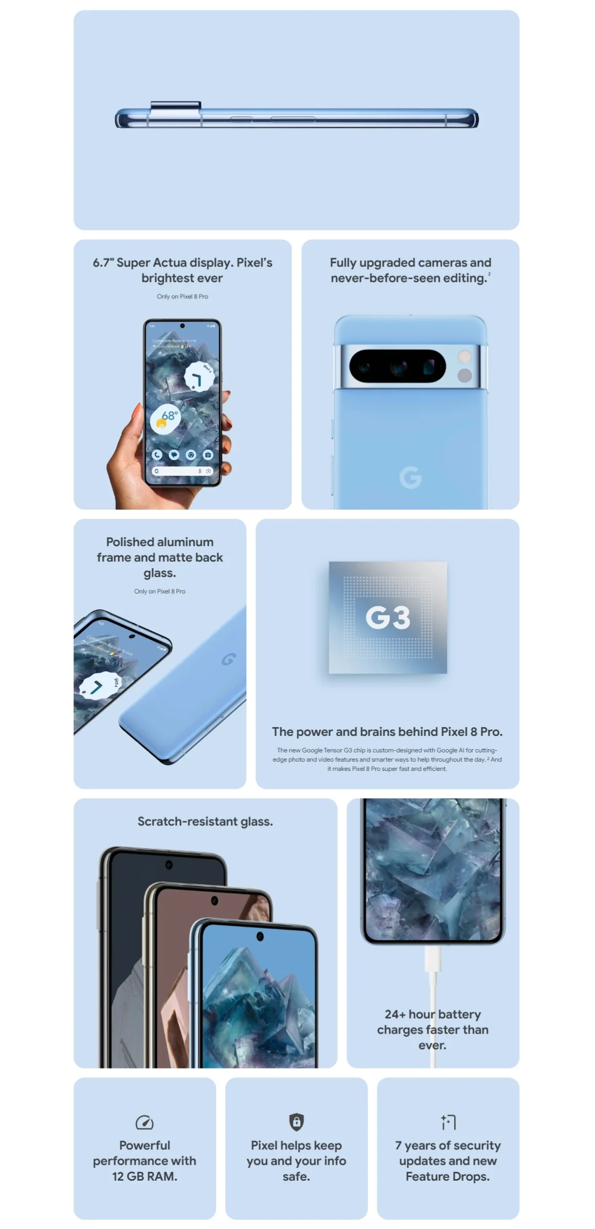 Comprar Versión Global Google Pixel 8 Pro 5G Google Tensor G3 6.7inch 120HZ LTPO OLED Display 50MP Cámara principal 5050mAh Batería IP68 Smatphone