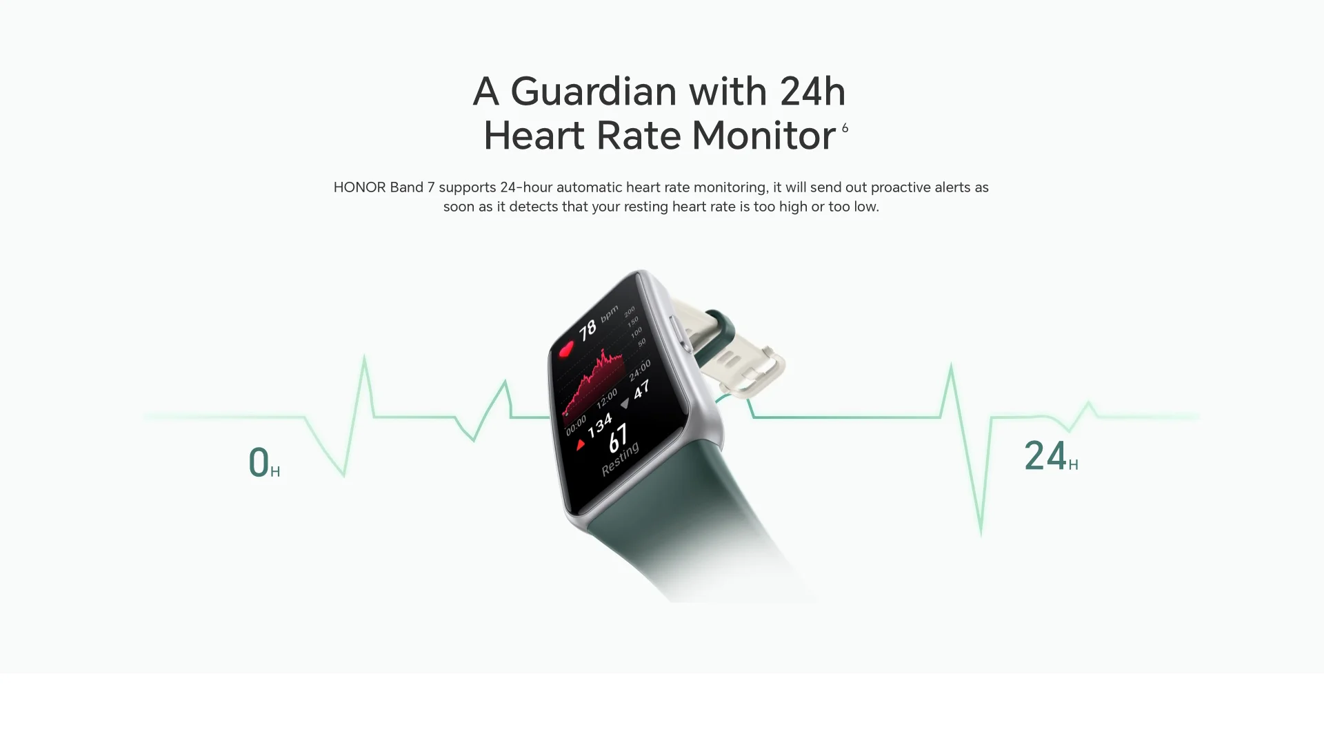 Comprar Versión Global HONOR Band 7 Pantalla AMOLED de 1.47 pulgadas Batería de 2 semanas de duración Monitorización de Oxígeno en Sangre 24/7 Smartband