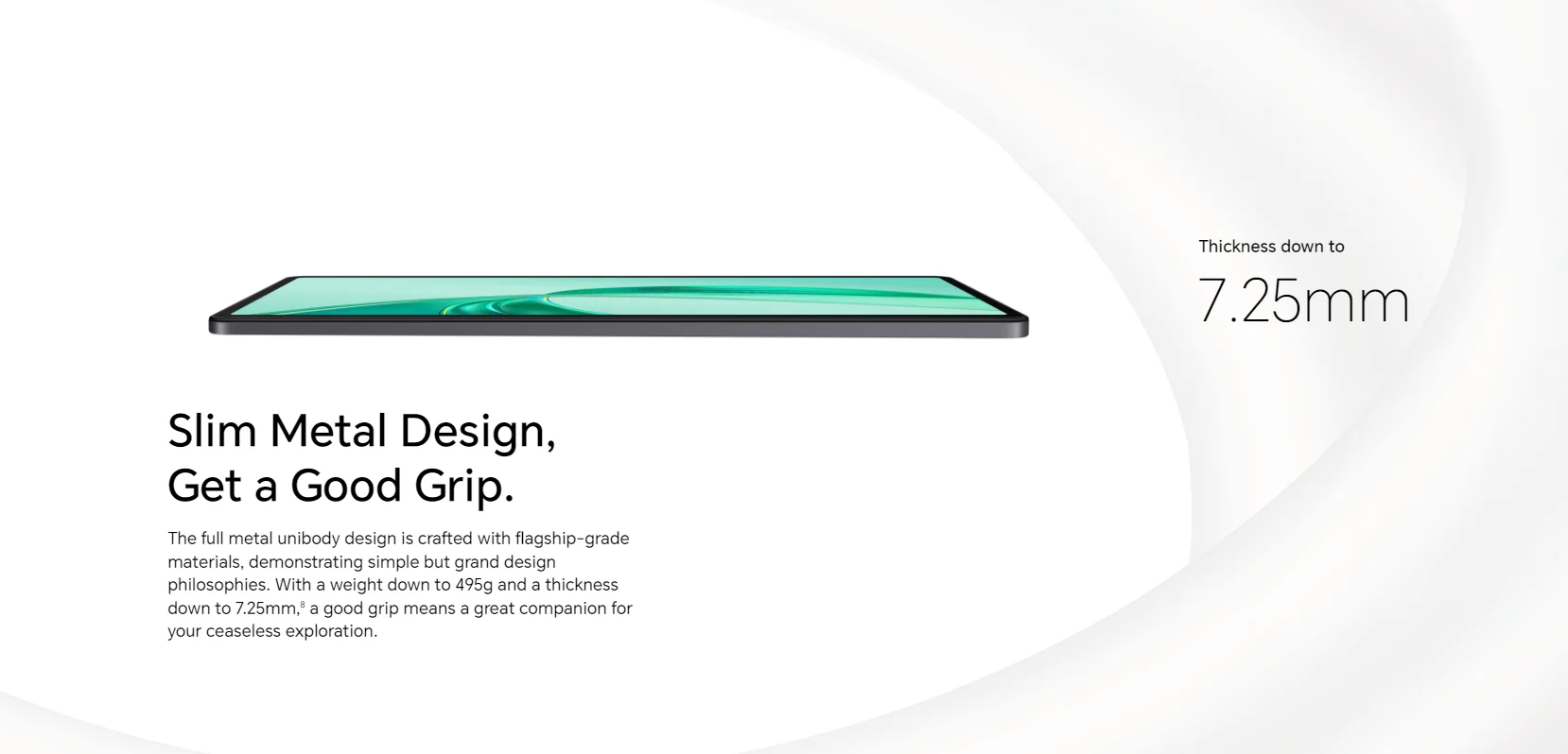 Los datos provienen del laboratorio HONOR. El grosor de la tableta no incluye la sección abultada de la cámara. El tamaño y el peso reales pueden variar según las configuraciones, los procesos de fabricación y los métodos de medición.