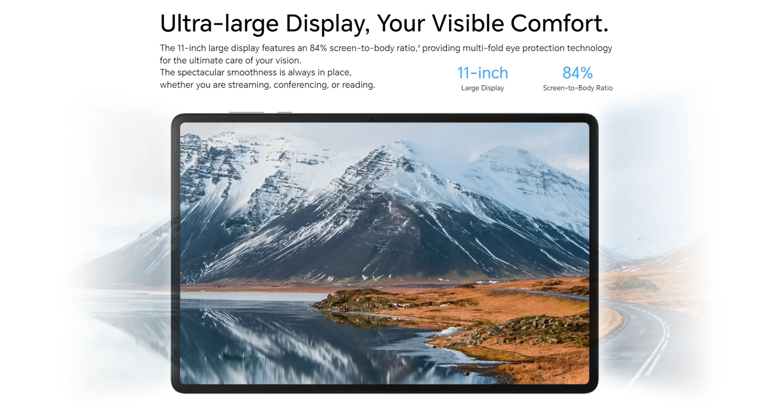 La gran pantalla de 11 pulgadas presenta una relación pantalla-cuerpo de 84%, 4 proporcionando tecnología de protección ocular múltiple para el máximo cuidado de su visión.