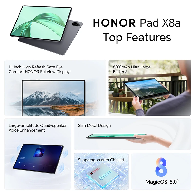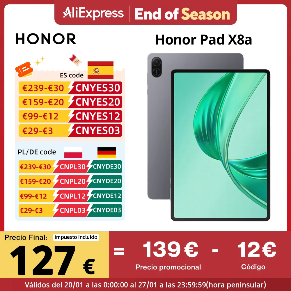 Comprar Versión Global HONOR Pad X8a Tablet de 11 pulgadas de Alta Frecuencia de Refresco Confort Ocular Batería de 8300mAh Gran amplitud Altavoz cuádruple Voice Enhancement