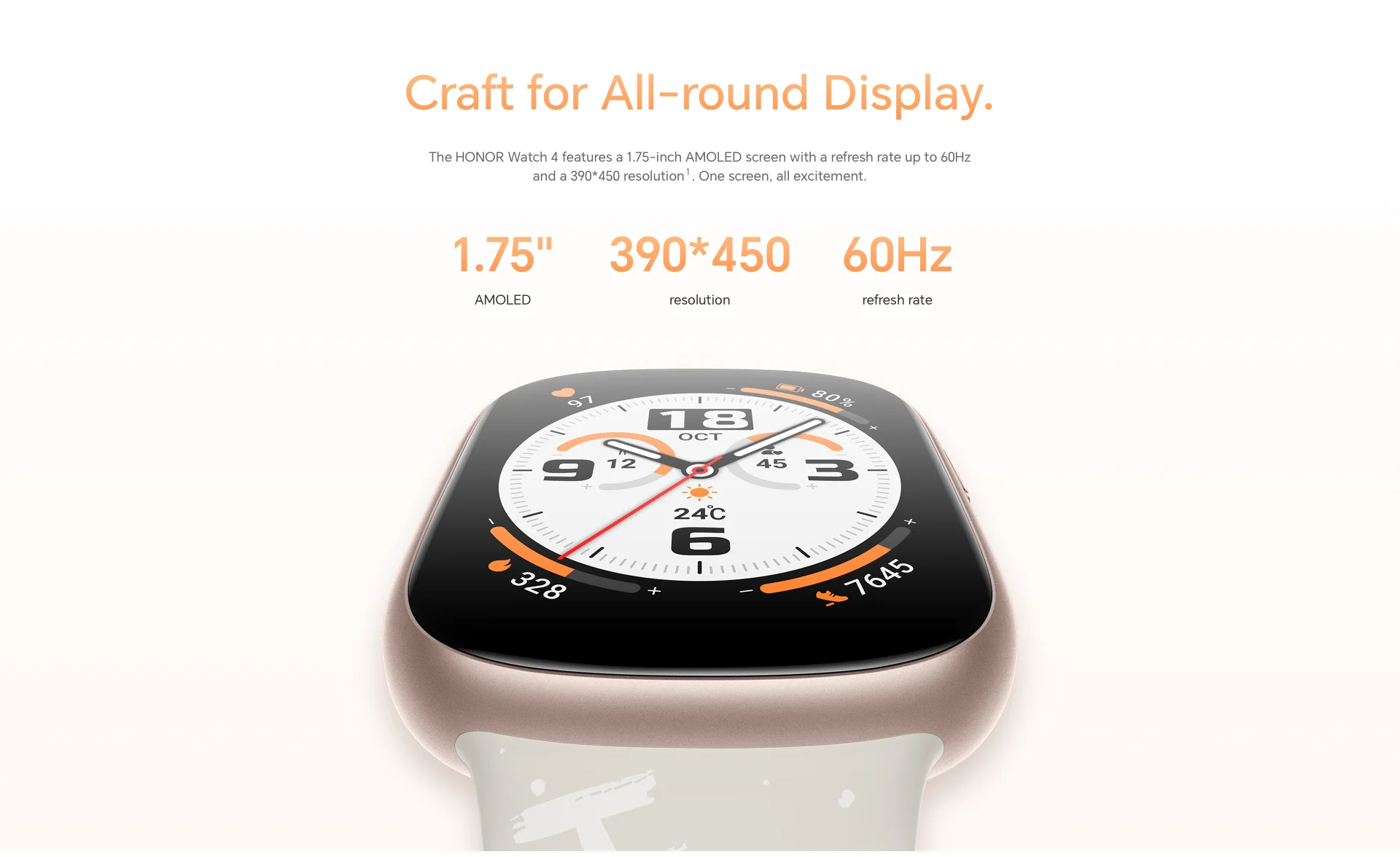 Pantalla-----------------Pantalla a color AMOLED de 1,75 pulgadas, 450 x 390 píxeles, 340 PPI