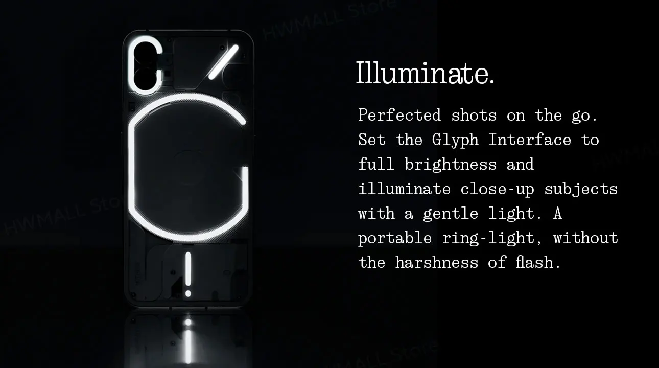 Disparos perfeccionados sobre la marcha. Configura la interfaz de glifos a brillo total e ilumina sujetos de primer plano con una luz suave. Un anillo de Luz Portátil, sin la dureza del flash.