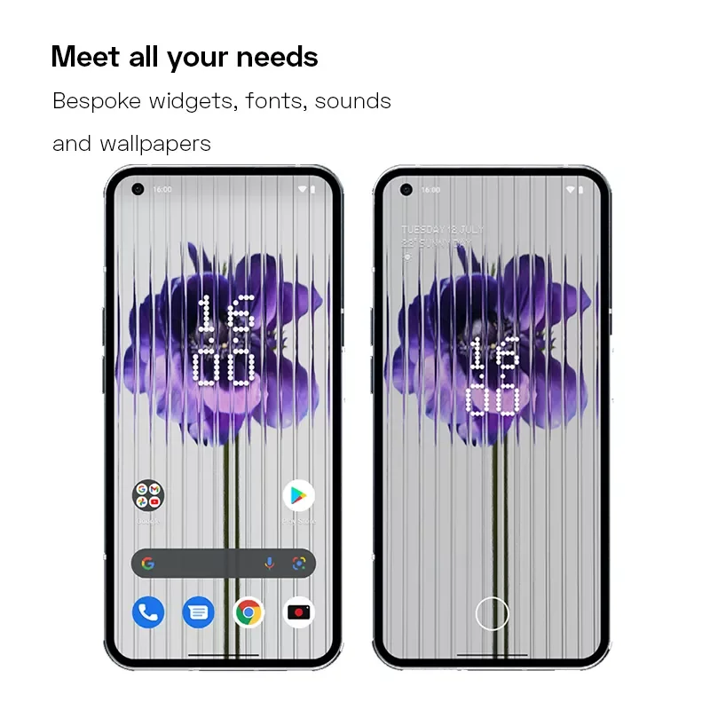 El Sistema Operativo Nothing solo ofrece lo mejor de Android. Sin bloatware. Simplemente velocidad y una experiencia fluida. El hardware y el software hablan un solo lenguaje visual, con widgets, fuentes, sonidos y fondos de pantalla personalizados. Permite una integración perfecta con productos de terceros.