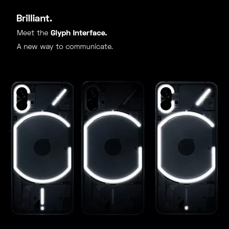 Conozca la interfaz de glifos. Una nueva forma de comunicarse. Los patrones de luz únicos indican quién llama. Notificaciones de aplicaciones de señales, estado de carga y más. Interacciones cotidianas, alegres.