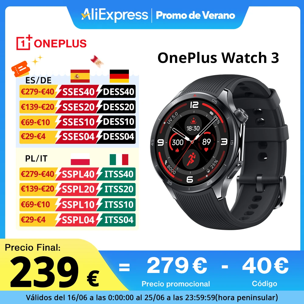 Comprar Versión global OnePlus Watch 3 Reloj inteligente Pantalla LTPO AMOLED de 1,50 pulgadas Procesador Snapdragon W5 GPS de doble frecuencia Wear OS