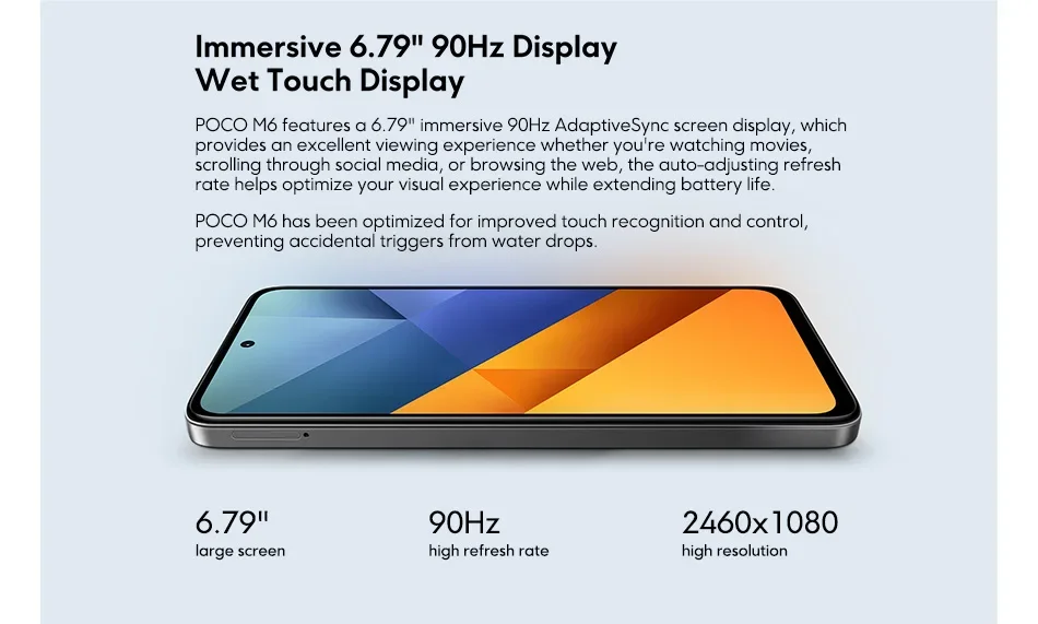 Pantalla ----------Pantalla FHD + de 6,79 ", 2460x1080Resolución,Frecuencia de actualización de 90Hz AdaptiveSync