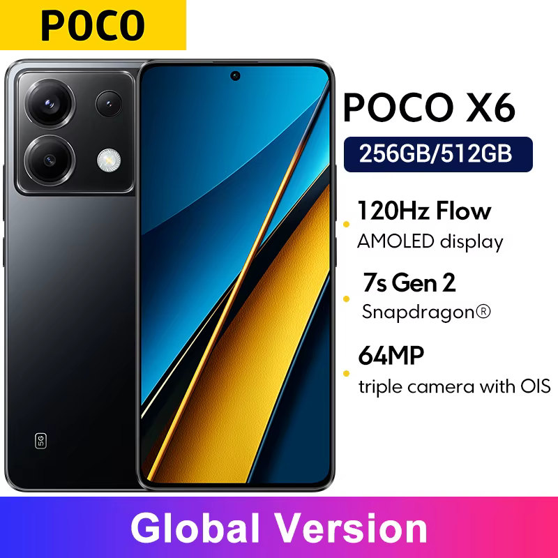 Comprar Versión Global POCO X6 5G 64MP Cámara con OIS 67W Carga NFC Snapdragon 7s Gen 2 Smartphone Pantalla AMOLED de Flujo de 120Hz
