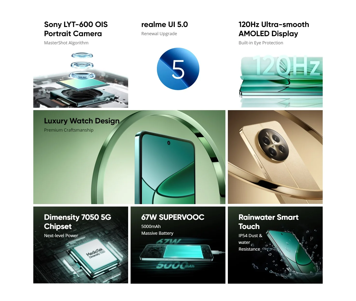 Comprar Versión Global realme 12+ 5G 120Hz Pantalla OLED Ultra Suave 67W Carga SUPERVOOC MTK Dimensity 7050 Cámara 5G OIS realme 12 Plus 5G