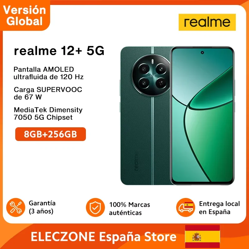 Comprar Versión Global realme 12+ 5G 120Hz Pantalla OLED Ultra Suave 67W Carga SUPERVOOC MTK Dimensity 7050 Cámara 5G OIS realme 12 Plus 5G
