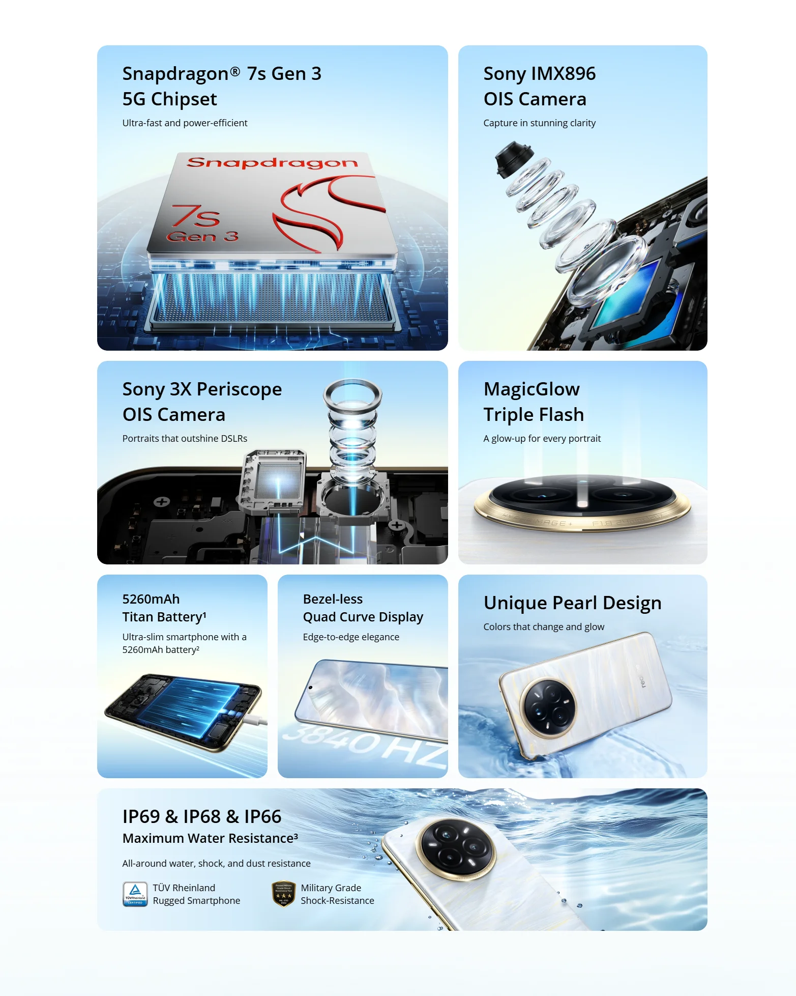 Rear Camera --- 50MP Sony IMX882 Periscope Camera(Support OIS) + 50MP Sony IMX896 OIS Camera(Support OIS) + 8MP Ultra-Wide Camera