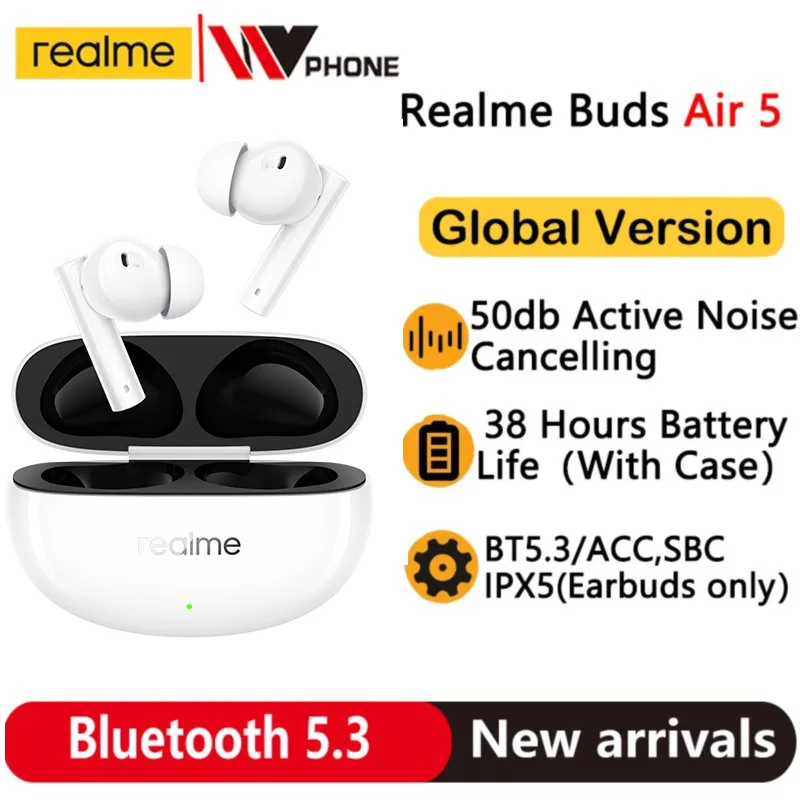 Comprar Versión Global realme Buds Air 5 TWS auricular 50dB cancelación activa de ruido 38 horas de duración de la batería IPX5 Bluetooth 5,3
