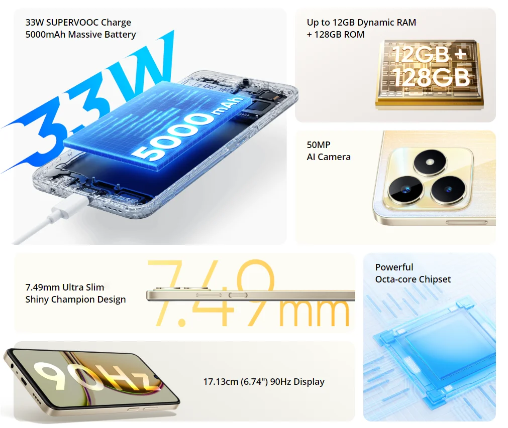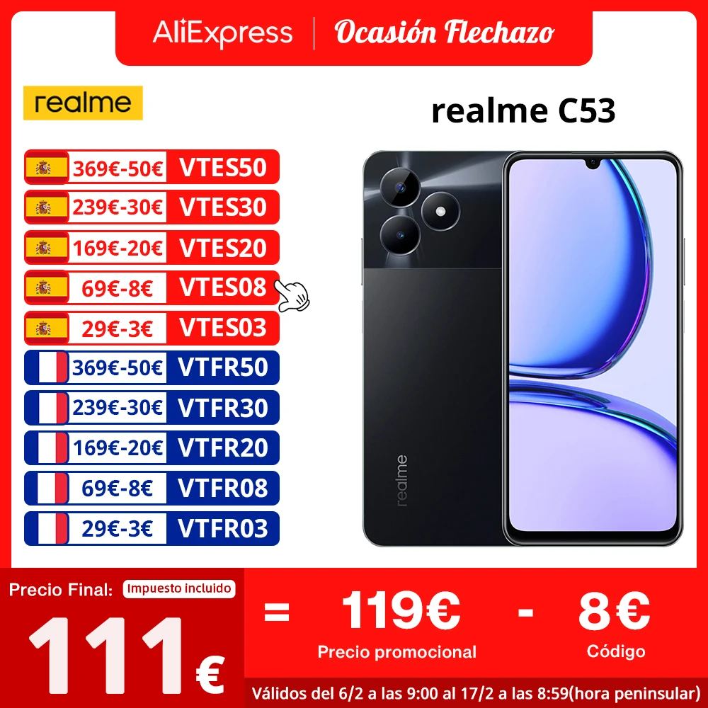 Comprar Versión Global realme C53 Smartphone 50MP AI Cámara 33W SUPERVOOC Carga 5000mAh Batería 6.74" 90Hz Pantalla Ultra Delgado Unisoc T612 CPU