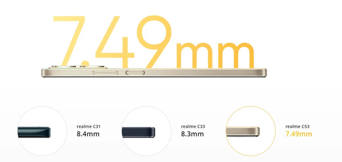 3. Los datos "ultra delgado 7,49mm" son proporcionados por el laboratorio de la Realme. El grosor real puede variar ligeramente.