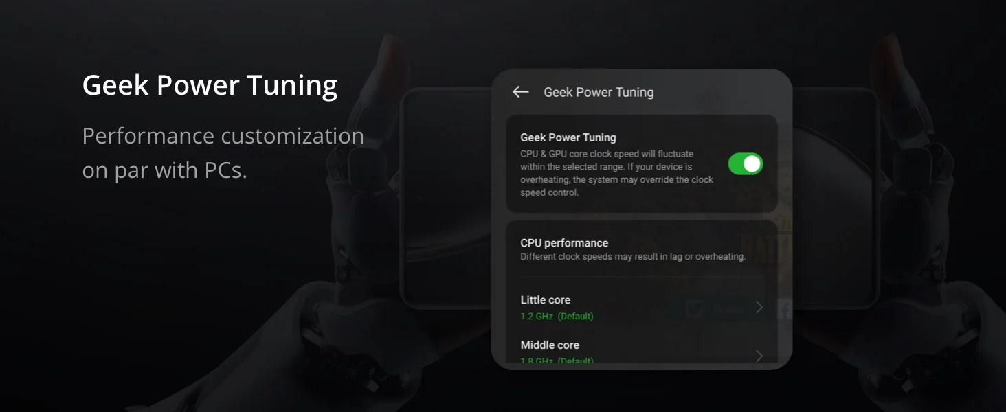Finalmente, el rendimiento de su teléfono inteligente es personalizable. Con la capacidad de afinar su CPU y GPU con un rango de ajuste de 50-100%, obtiene control total sobre su rendimiento. Abra un juego ultraestable que nunca le defraudará, con el poder del máximo rendimiento y los juegos de alto FPS al alcance de su mano.