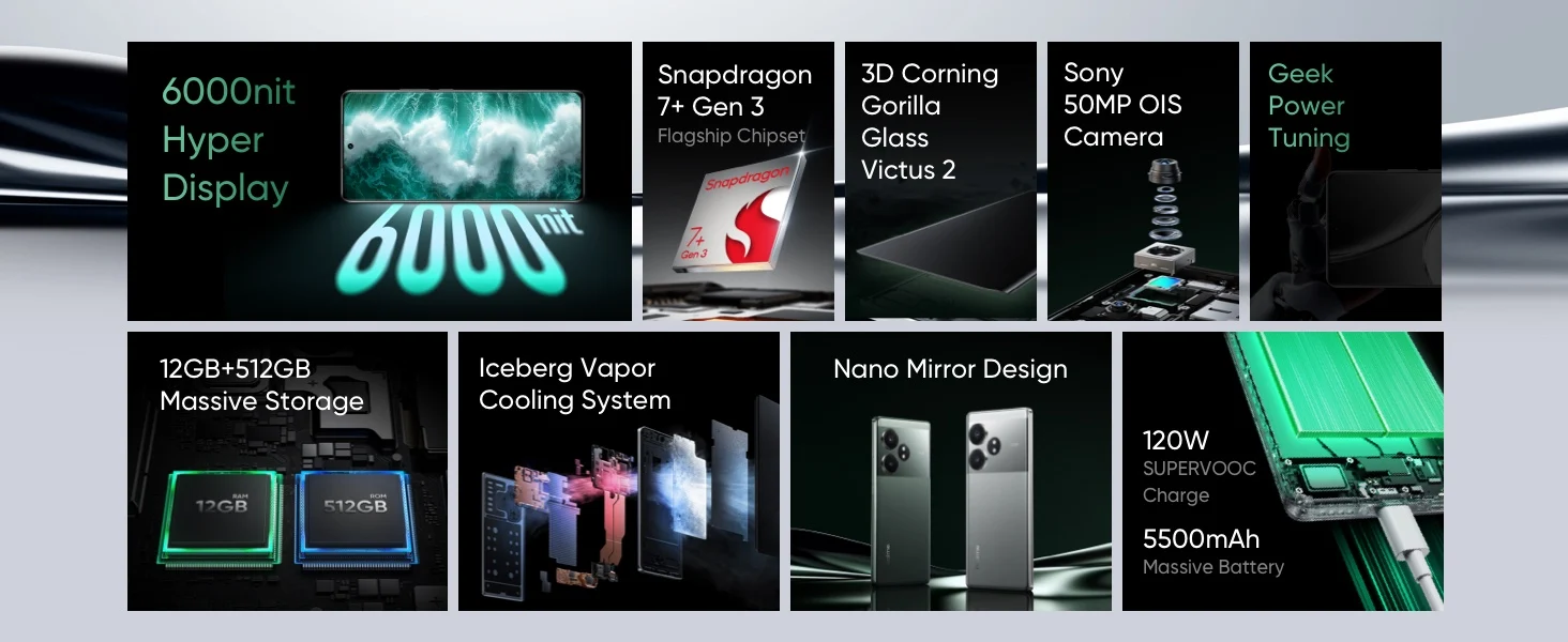 Comprar Versión Global realme GT 6T 5G Smartphone 6000nit Hyper Display 120W SUPERVOOC Charge Snapdragon 7+ Gen 3 5500mAh Batería 50MP Cámara Principal