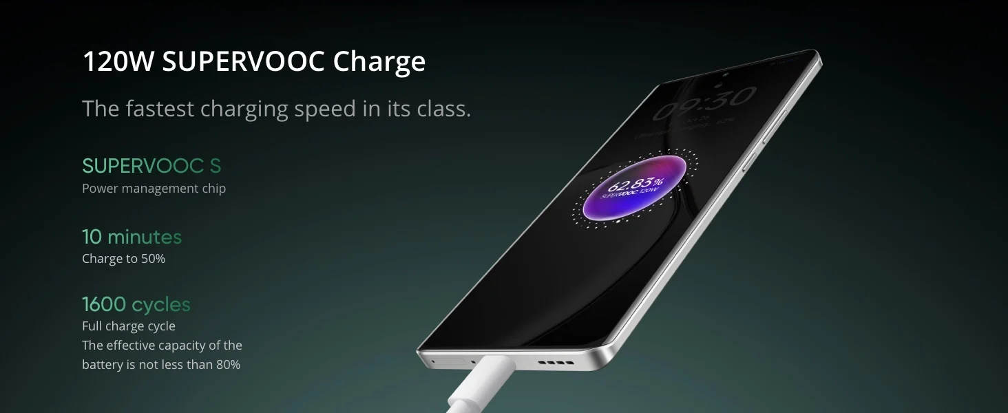 Alimentado por tecnología de carga 120W full-GaN y Chipset de administración de energía SUPERVOOC S,