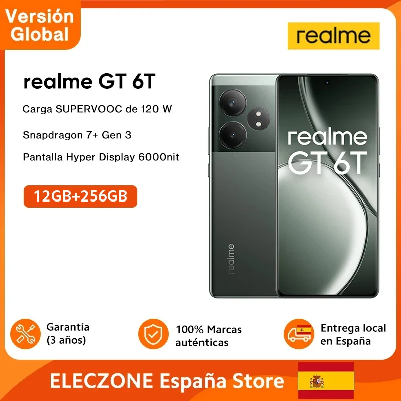 Comprar Versión Global realme GT 6T 5G Smartphone 6000nit Hyper Display 120W SUPERVOOC Charge Snapdragon 7+ Gen 3 5500mAh Batería 50MP Cámara Principal