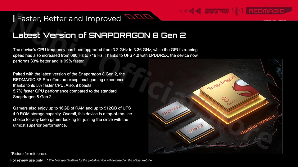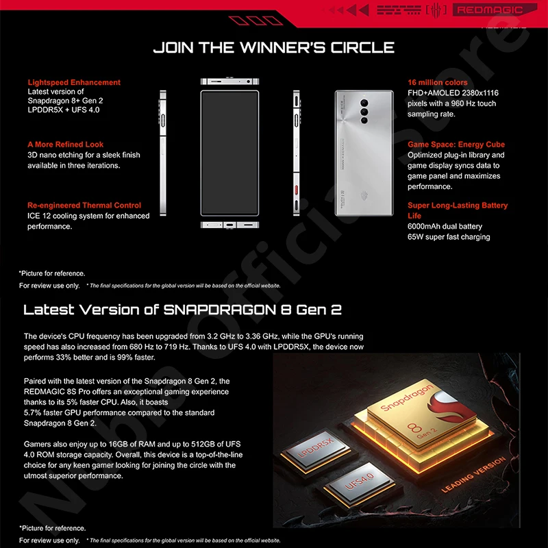 Procesador --- Última versión deSnapdragon 8 Gen 2 + Chip de juego dedicado: Red Core 2 + UFS 4.0 + LPDDR5X