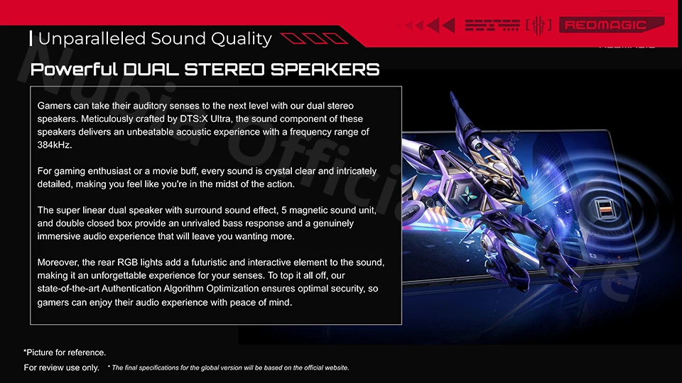 Audio Dual --- smart PA, parlantes duales, 3 micrófonos, sonido DTS, conector de 3,5 mm con una configuración extremadamente avanzada.
