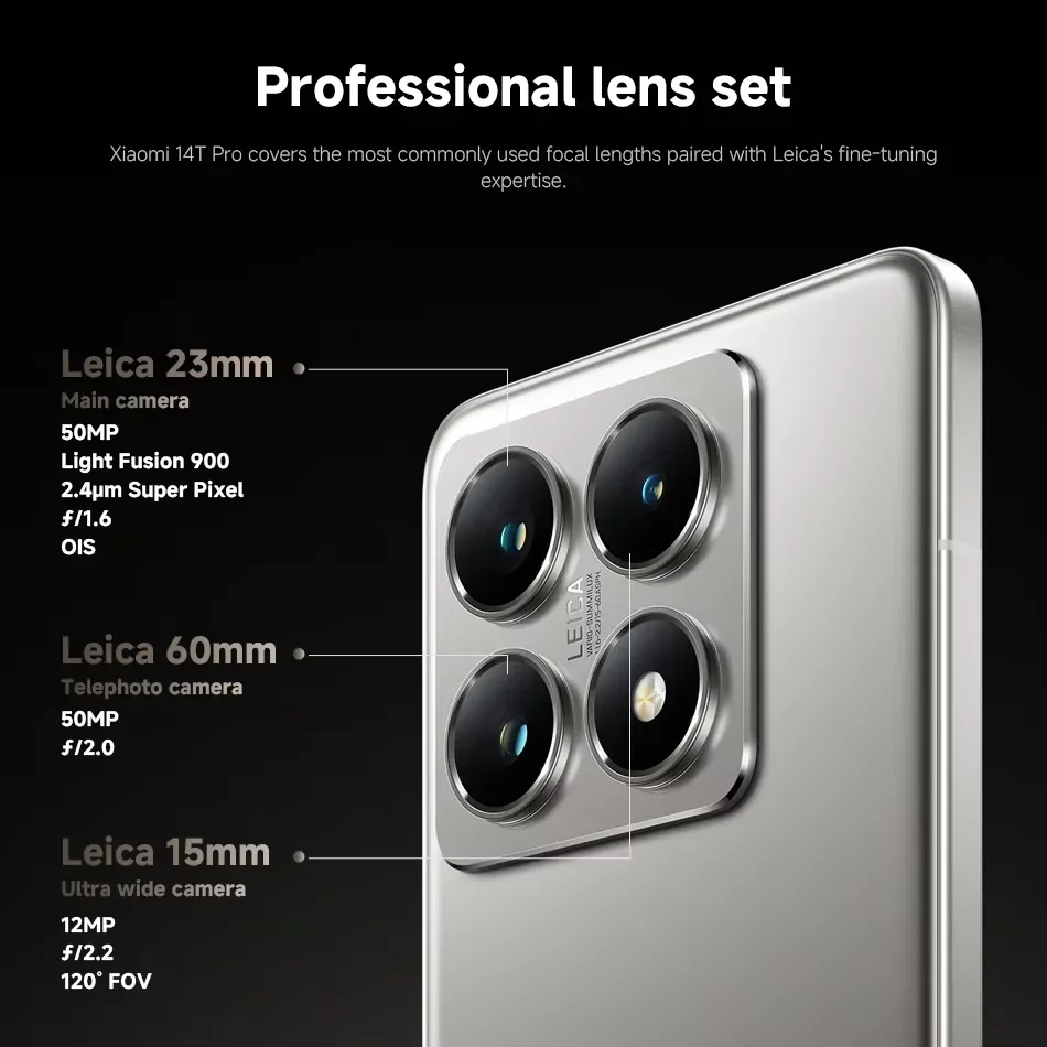 Package contents---------Xiaomi 14T Pro / USB Type-C Cable / SIM Eject Tool / Protective Case / Safety Information / Quick Start Guide and Warranty Card / Desiccant