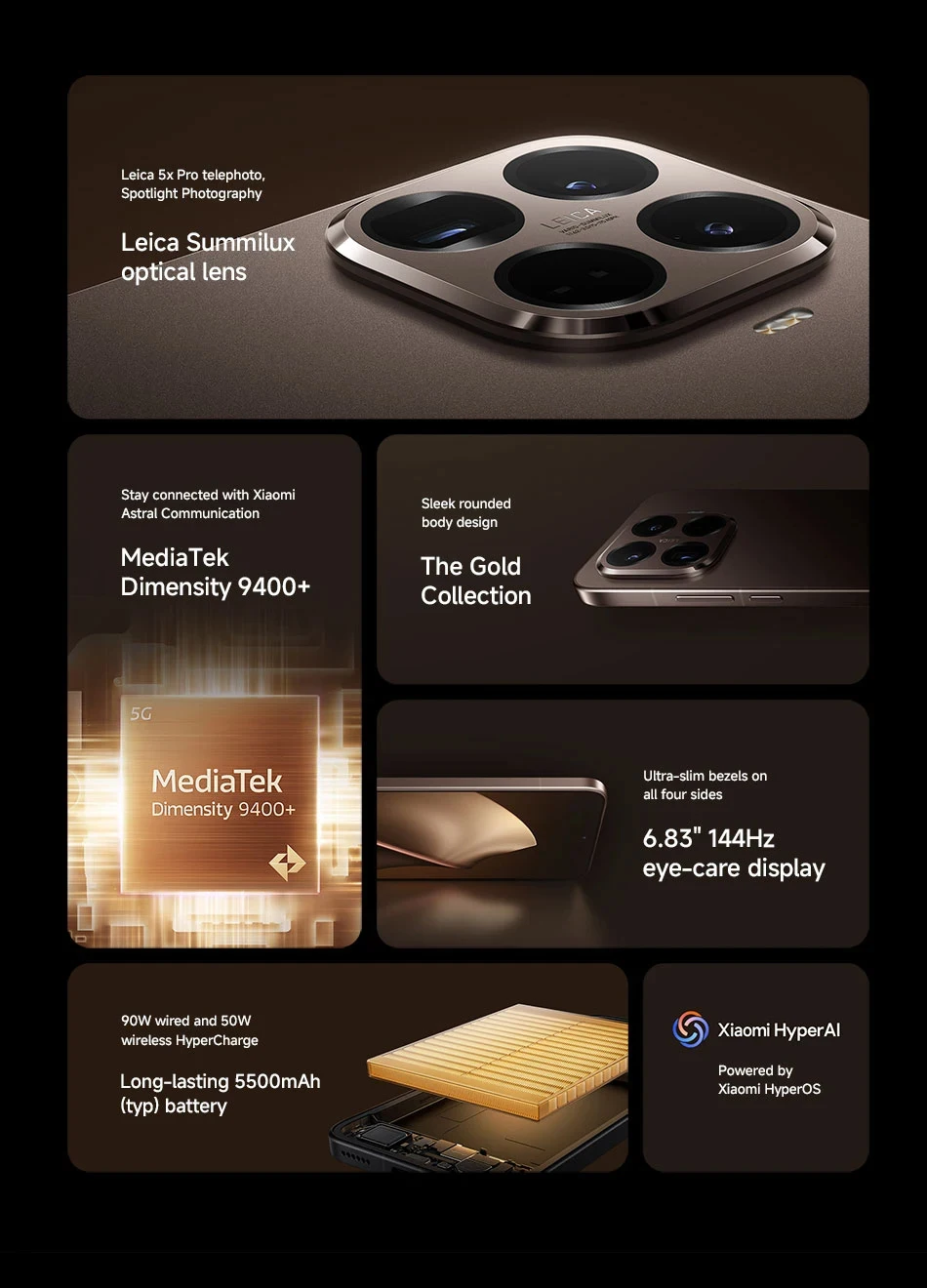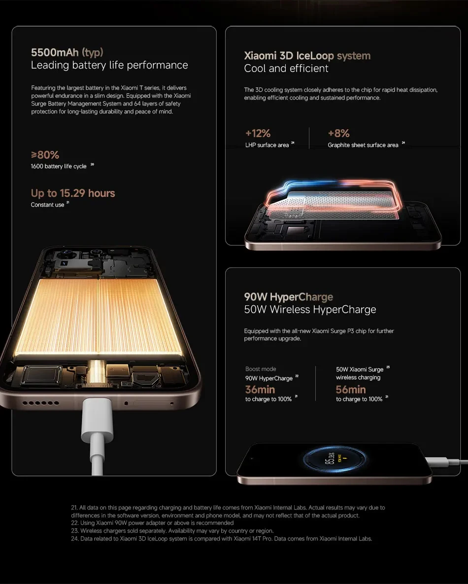 Batería------Batería Xiaomi Surge de 5500 mAh (típica), HyperCharge de 90 W, HyperCharge inalámbrica de 50 W