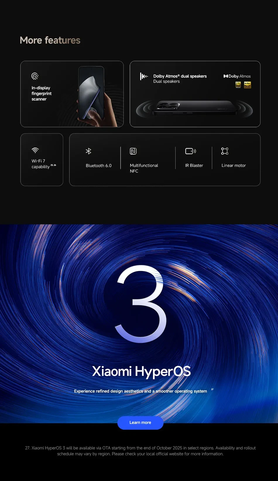 SO-----------Desarrollado por Xiaomi HyperOS 2, compatible con varios idiomas y Google Play, sensor de huellas dactilares en pantalla, desbloqueo facial AI, resistencia a salpicaduras y polvo IP68