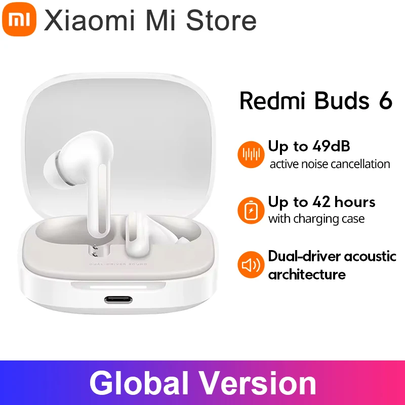 Comprar Versión global Xiaomi Redmi Buds 6 Hasta 42 horas de escucha con estuche de carga Cancelación activa de ruido de hasta 49 dB