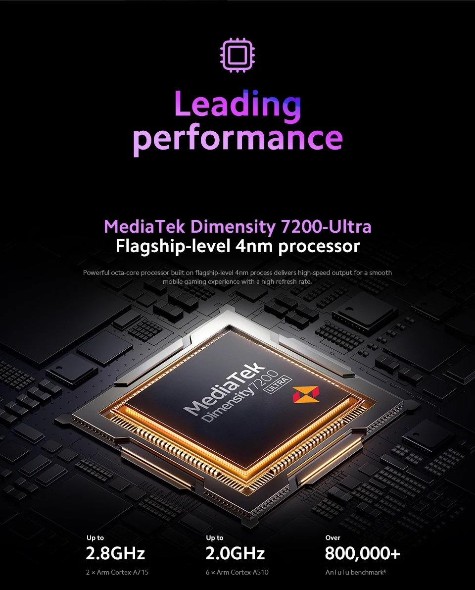 CPU------------- MediaTek Dimensity 7200-Ultra, proceso de fabricación de 4 nm, hasta 2,8 GHz