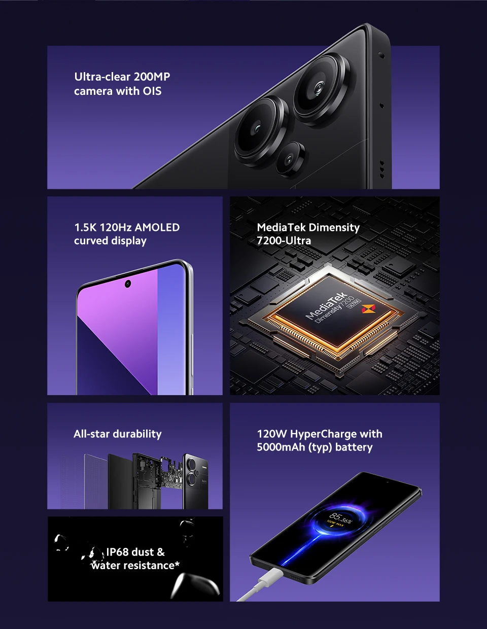 Comprar Versión Global Xiaomi Redmi Note 13 Pro Plus 5G Smartphone 120W Hyper Charge MTK Dimensity 7200-Ultra 200MP Cámara NFC
