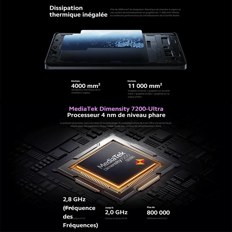 CPU------------- MediaTek Dimensity 7200-Ultra, proceso de fabricación de 4 nm, hasta 2,8 GHz