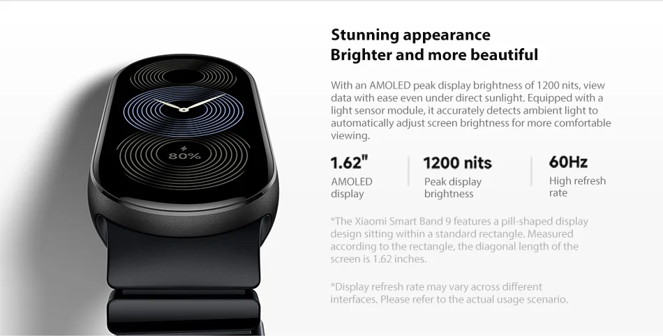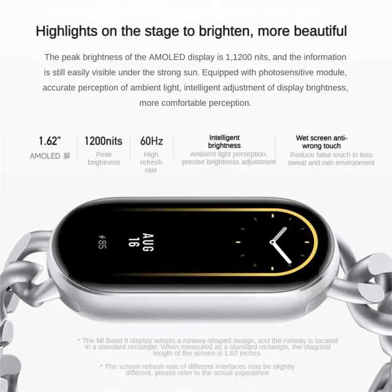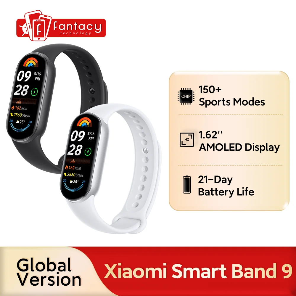 Comprar Versión Global Xiaomi Smart Band 9 Pantalla AMOLED de 1,62 pulgadas Más de 150 modos deportivos Oxígeno en sangre Duración de la batería de 21 días Mi band 9
