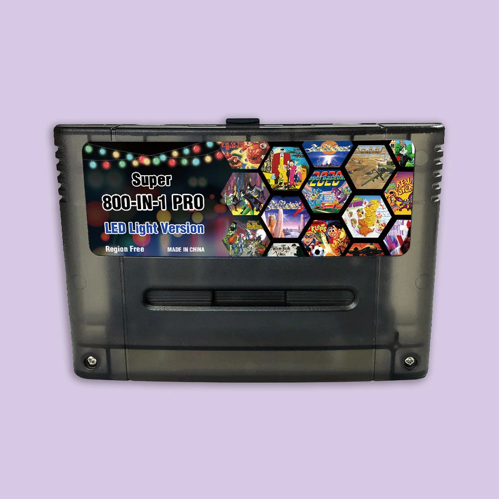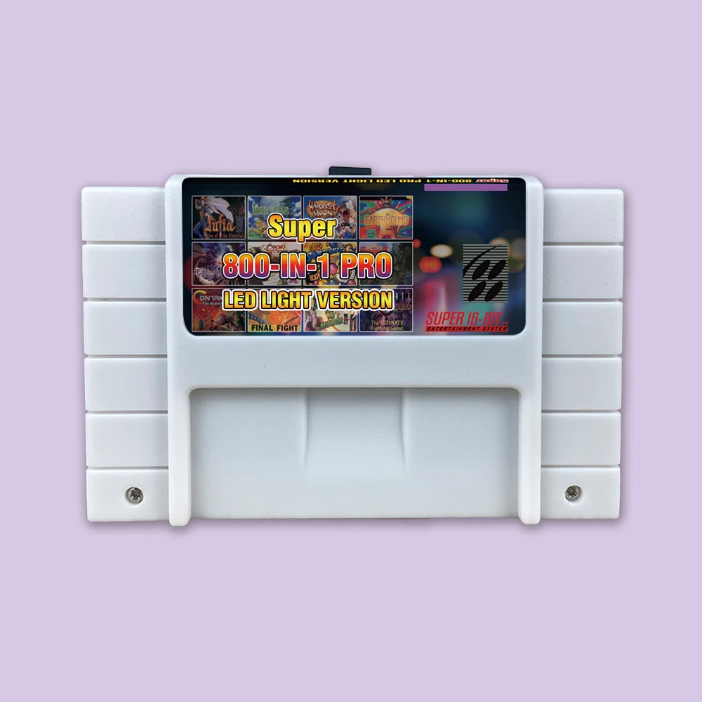 Comprar Versión de luz Led 800 en 1 o cartucho de consola de juegos SNES de 16 bits, tarjeta de juego f, compatible con consola USA/EUR/Jap