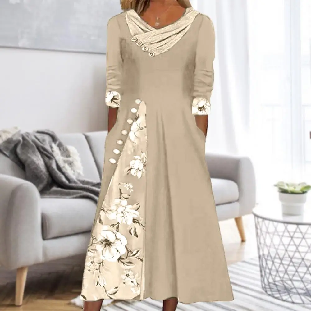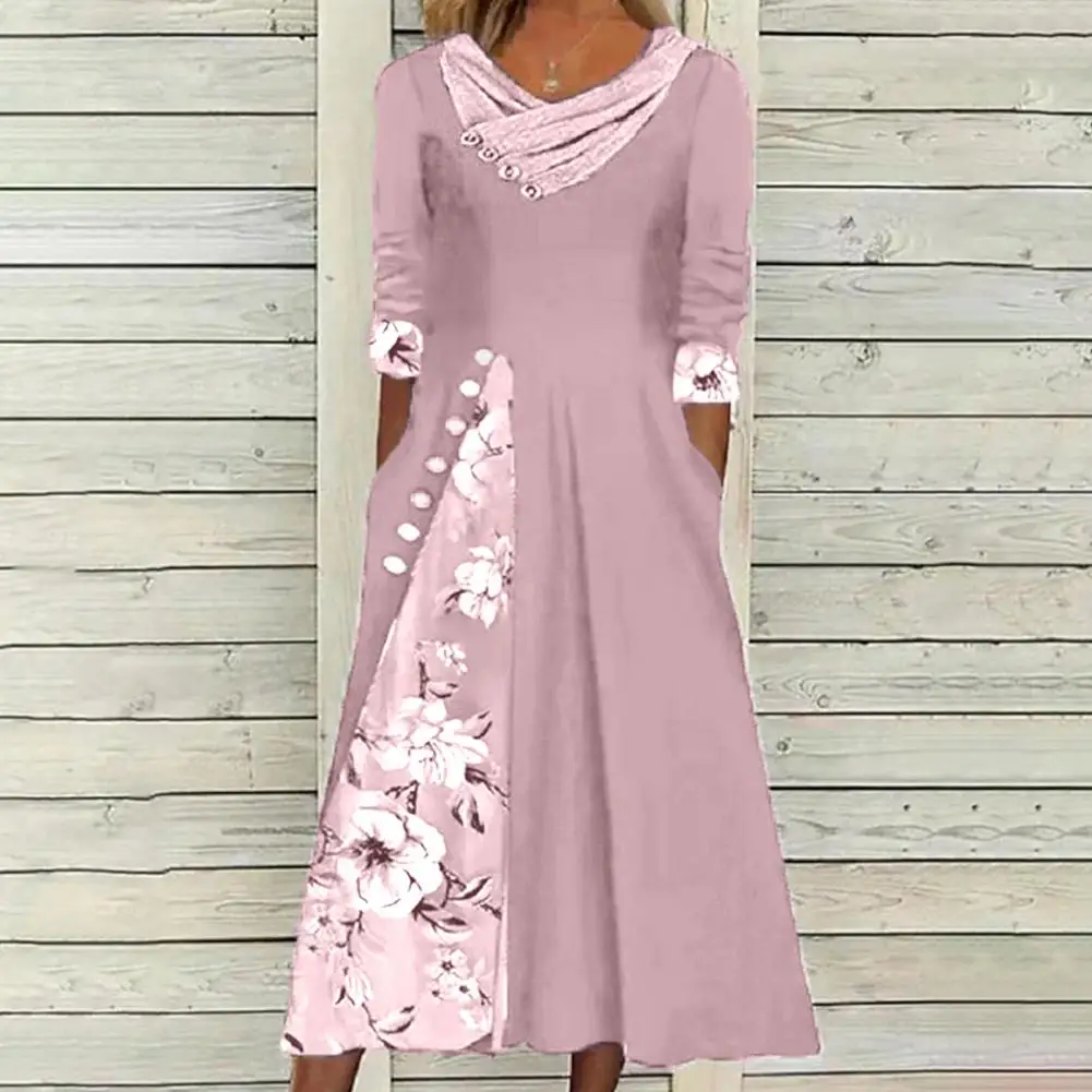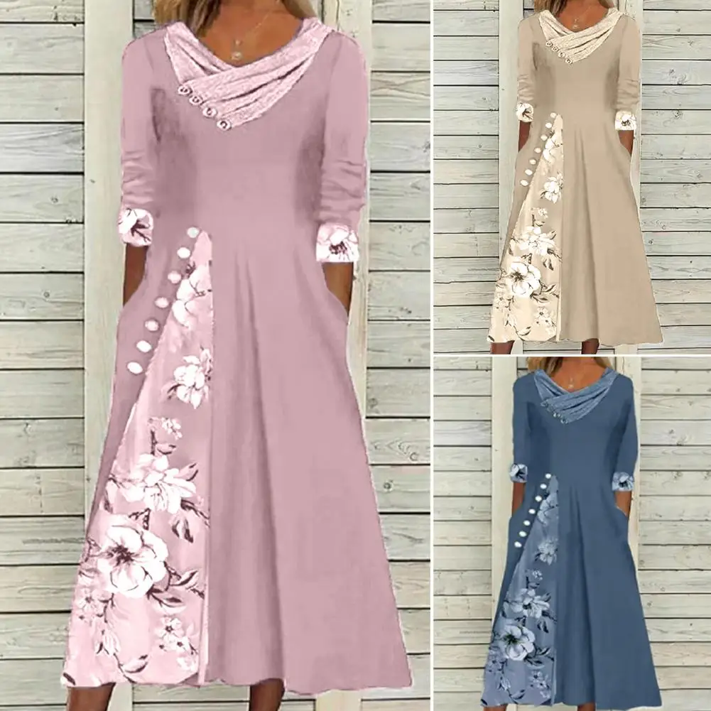 Con un hermoso diseño de patchwork con estampado floral, este vestido viene muy a la moda y llamativo, lo que te hace lucir muy elegante, temperamental y te lleva a la vanguardia del estilo.