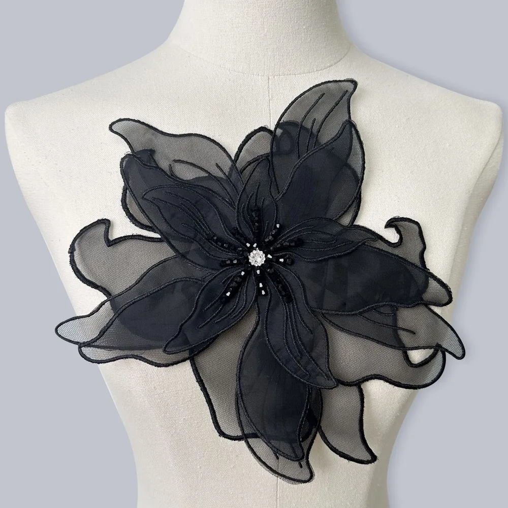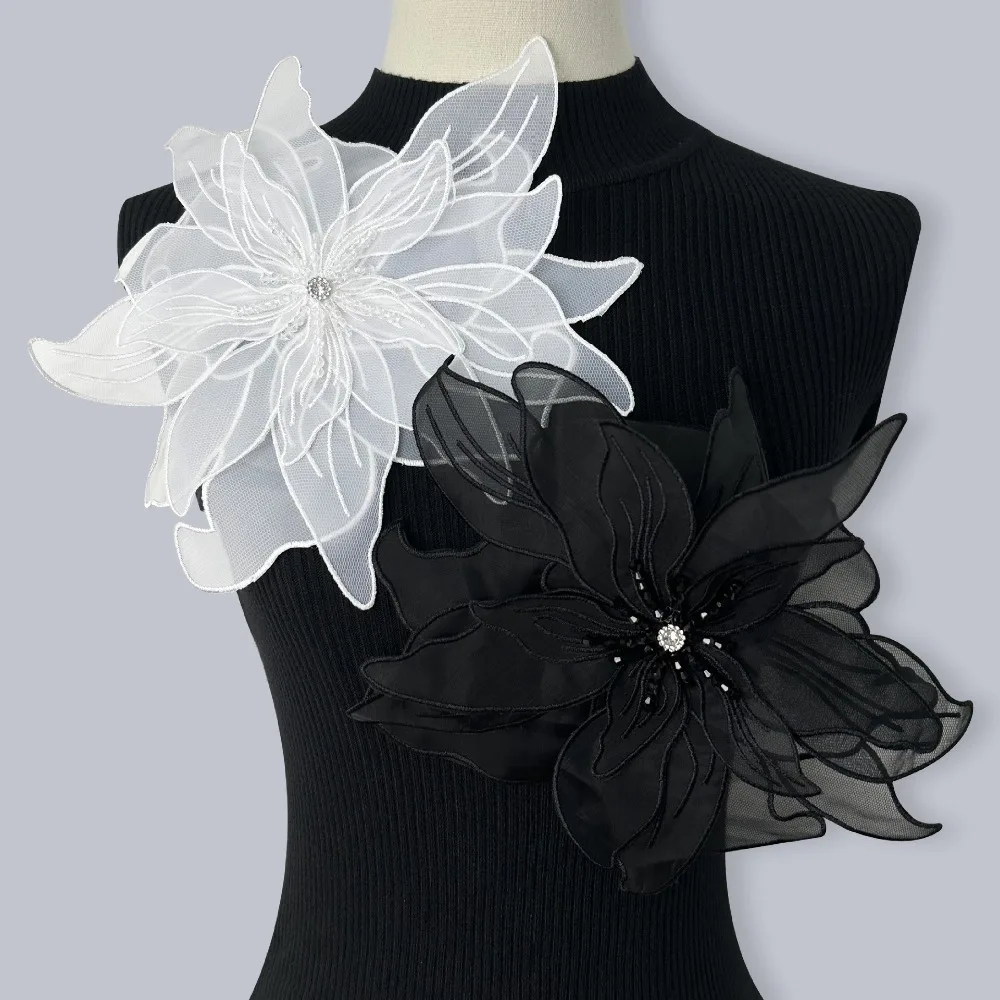 Comprar Vestido de perlas con tachuelas de cristal de flores tridimensionales de Organza de múltiples capas, decoración con broche, accesorios