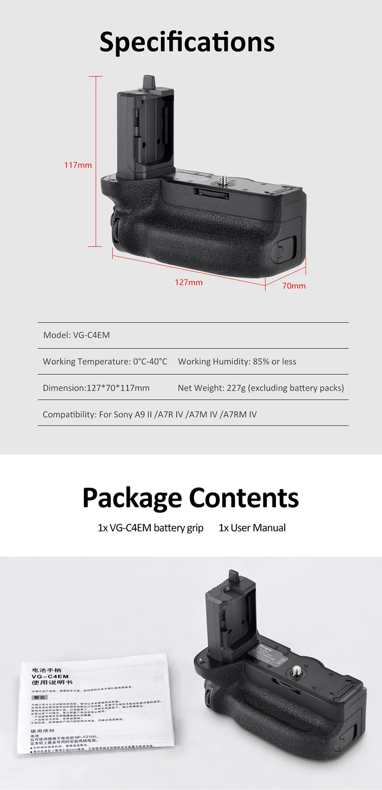 Empuñadura de batería VG-C4EM VGC4EM para Sony a7RIV a7R4 a7IV a74 a9II a7rm4, A7M4, a1, a7s3, NP-FZ100, FZ100...