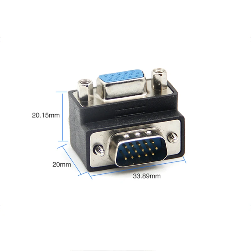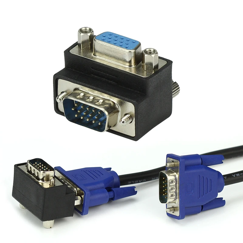 Comprar VGA 15 pines macho a hembra M/F conector de Monitor de cable adaptador en ángulo recto de 90 grados