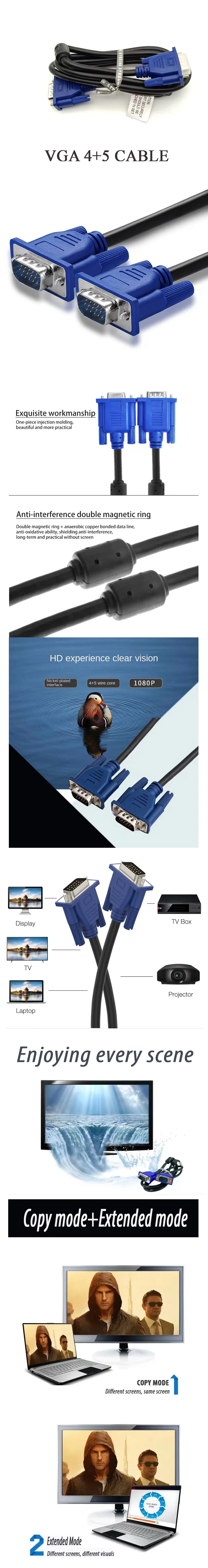 Comprar VGA 4 5 cable macho a macho de alta definición ordenador proyector monitor de vídeo cable de datos con anillo magnético