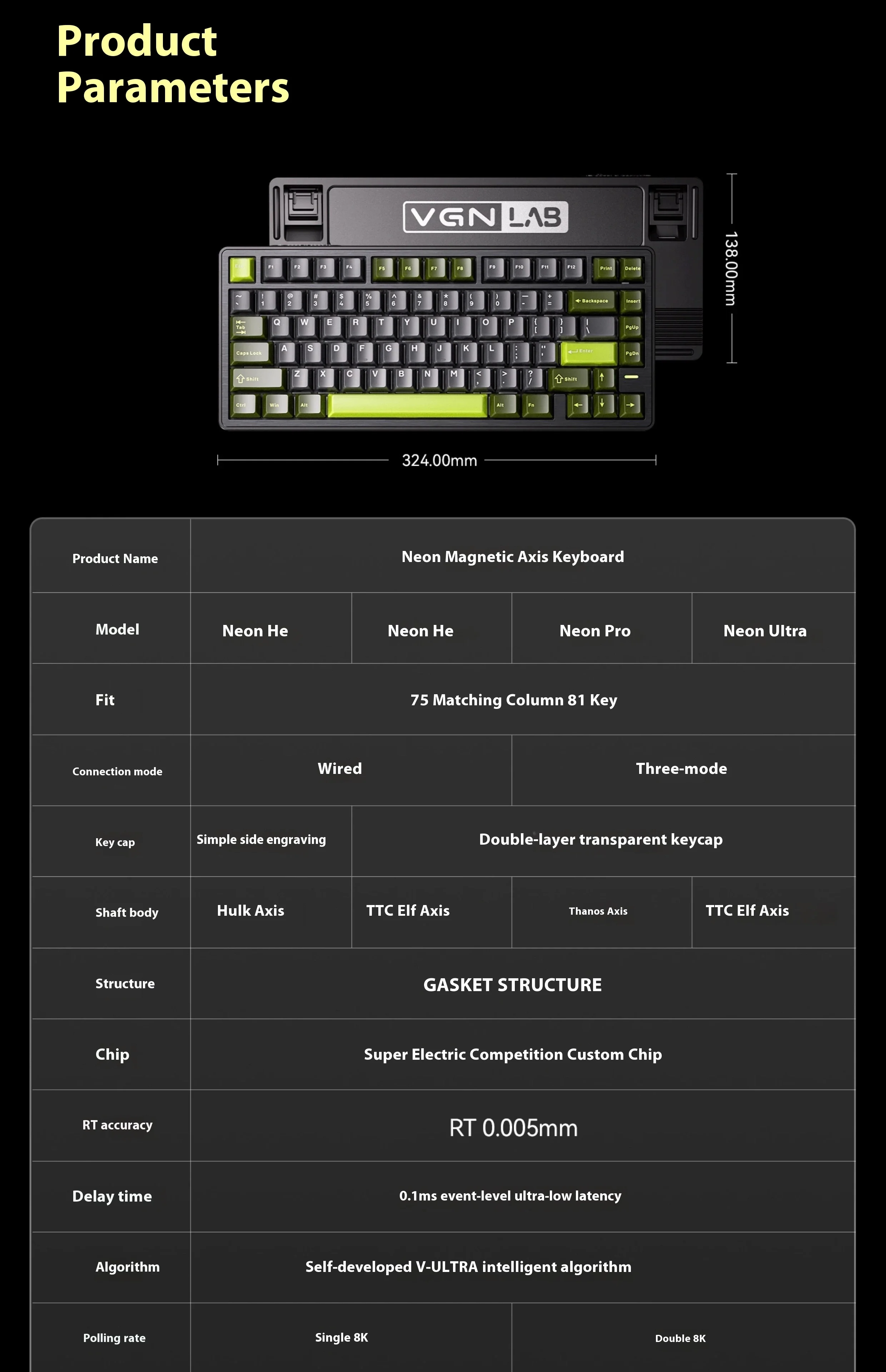 Comprar Vgn Neon75 versión súper competitiva Teclado mecánico triodo E-Sport interruptor magnético teclado de juego 8000mah accesorio de Pc