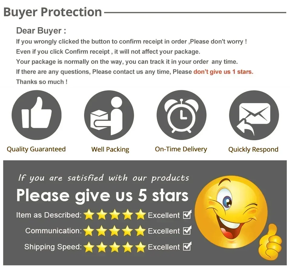 1.if you are satisfied with the items and our service, please take a minute to leave us a positive with 5 stars.