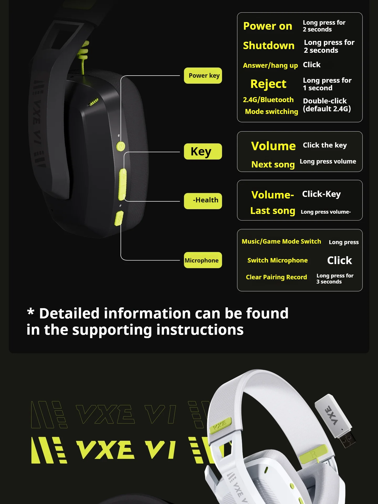 Comprar VGN VXE Siren V1 auriculares inalámbricos modo Dual Bluetooth 5,3 2,4G FPS ligero de baja latencia Hifi auriculares para juegos accesorios de PC