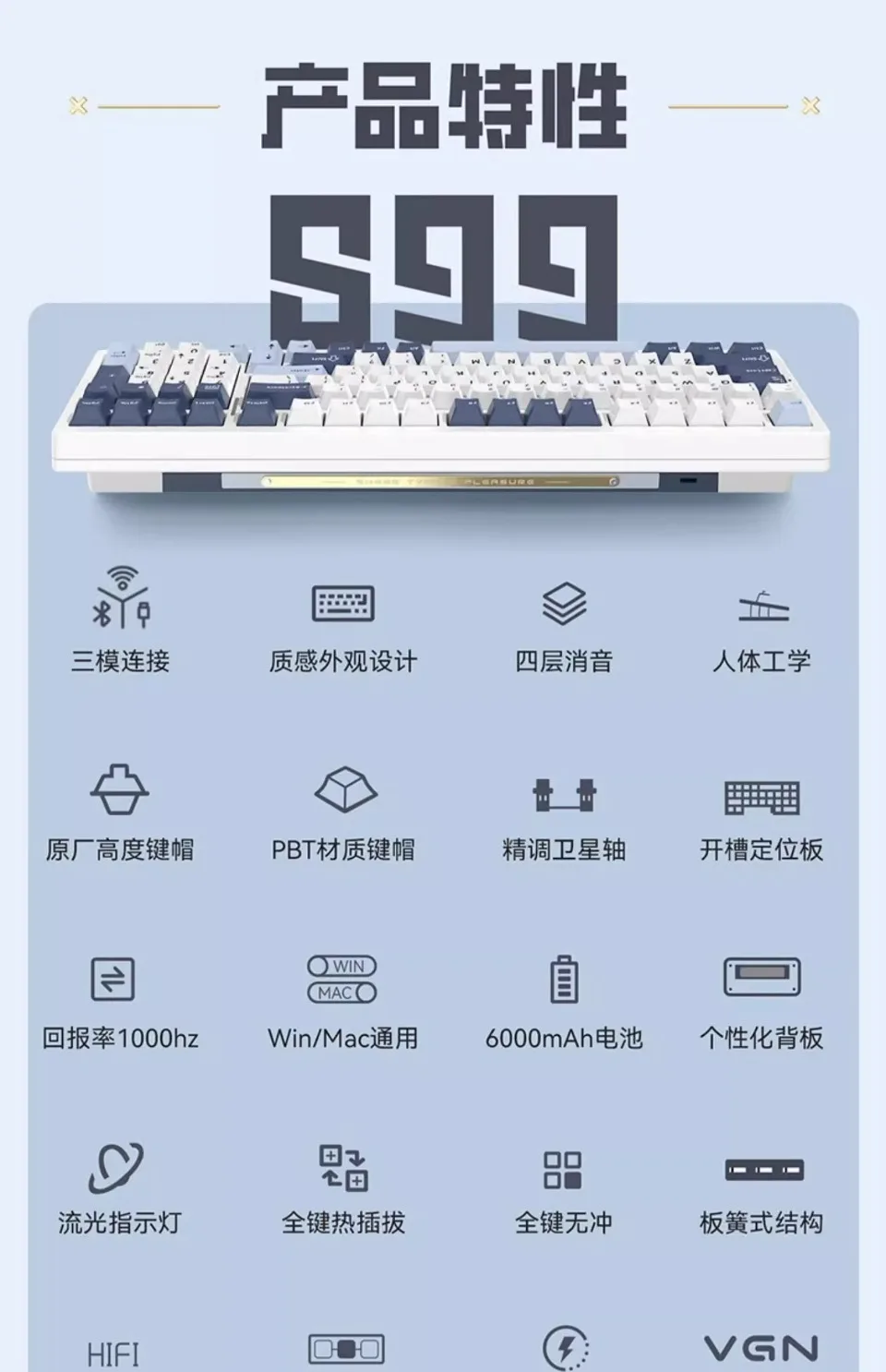 Nombre del producto:Teclado mecánico VGNS99