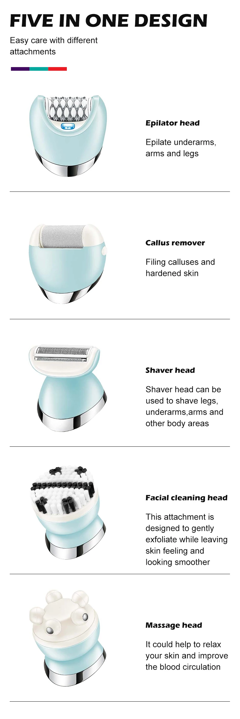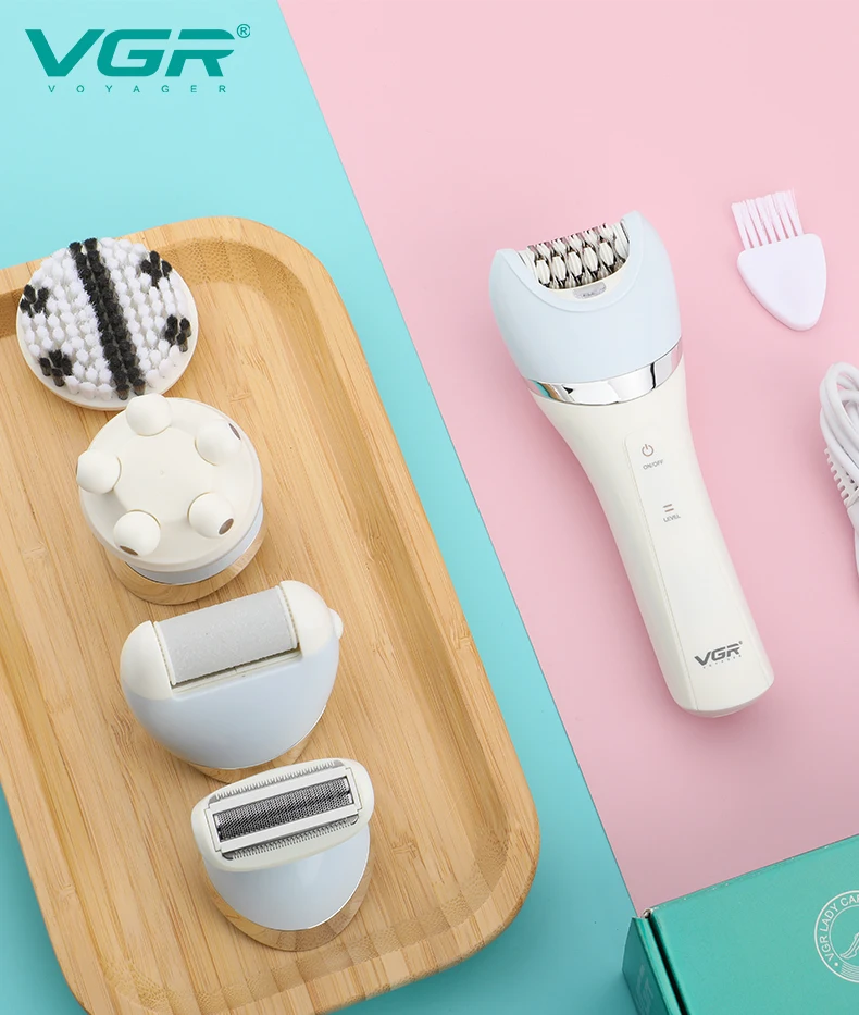 Comprar VGR-depiladora eléctrica 5 en 1 para mujer, afeitadora femenina para piernas y cuerpo, removedor de vello, recortador de Bikini, V-703 de masaje de limpieza Facial