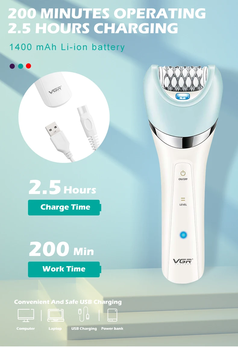 • Batería recargable con hasta 2 horas de tiempo de carga. :Con una batería recargable, La depiladora VGR 5 en 1 se puede usar durante hasta 90 minutos con una sola carga, lo que la hace perfecta para viajar o usar mientras viaja.
