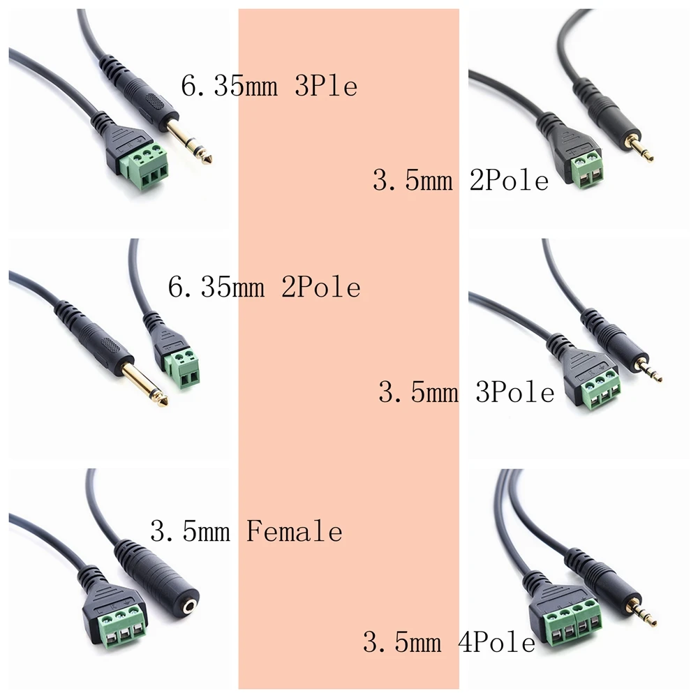 Video AV Balun 3,5 mm 4 polos 6,5 mm 3 polos estéreo macho a AV tornillo Terminal conector estéreo 3,5 mm macho bloque de terminales 30 cm